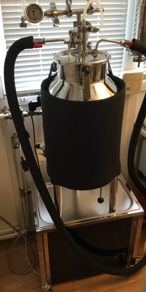 Термочехол пивоварни и теплоизоляция шлангов теплоносителя выполнены из материала K-Flex (вспененный каучук).