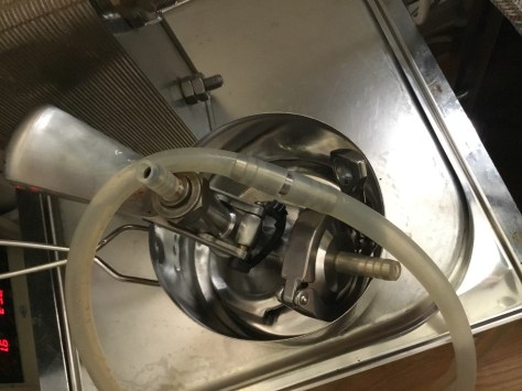 Снимаем оба шланга с головки КЕГа (пиво перелито вчера), шланги соединяем для циркуляционной мойки, головку ополаскиваем отдельно (в кухонной мойке), а тщательно промоем при циркуляционной мойке КЕГ.