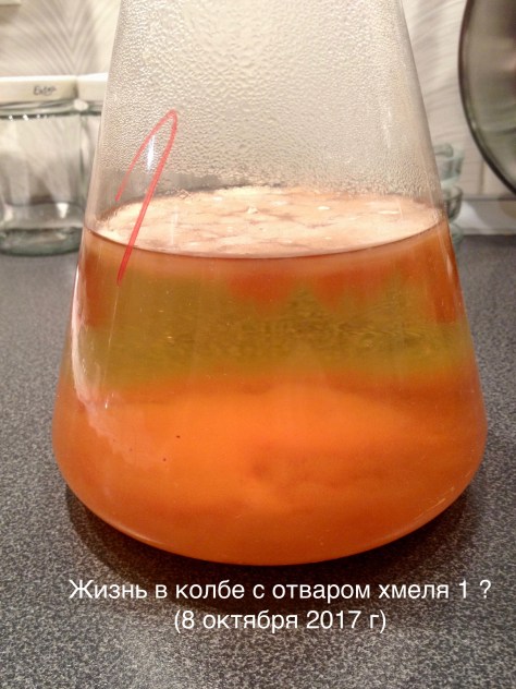 Это совсем короткая публикация. Сегодня я читал мои прежние дневниковые записи и натолкнулся на пару фотографий. Это колбы с очень крепким отваром очень горького хмеля. Признаки жизни внутри бесспорны.