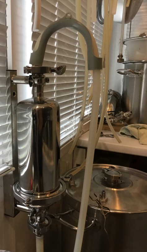 Как уже было отмечено в преамбуле пивовар сам кладет в сусловарочный бак хмель. Чаще всего это гранулированный продукт, который по мере кипячения расходиться в горячем сусле в виде довольно мелкой взвеси (ну и частично прилипает к стенке бака, образуя зеленый поясок над кипящим суслом). Хорошо бы в процессе перекачки в ферментор эту взвесь (вместе с другой взвесью — брухом) каким-то образом отделить от сусла.