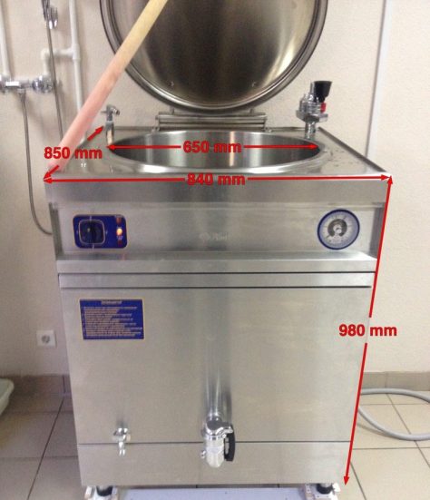 Все очень просто в случае применения экстрактов — по сути жидкий солодовый экстракт представляет собой частично обезвоженное пивное сусло приготовленное солодовниками на своем предприятии и собственном оборудовании. Вам нужна лишь чистая вода в достаточном количестве и котел подходящей вместимости, чтобы прокипятить полученное сусло с хмелем в течении часа. Подобный агрегат носит название — «сусловарочный котел«. В качестве такового можно использовать любой серийный пищеварочный котел, из тех, что выпускаются для предприятий общественного питания. Например такой, как на фото ниже (КПЭМ-250/9 Т) вместимостью 250 л.