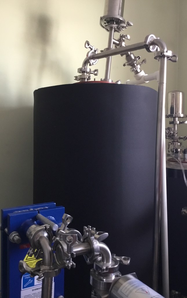 Как нетрудно понять, выше показано не все. (Так часто бывает и при покупке микро пивоварни — в комплекте тоже может отсутствовать многое необходимое). Для того чтобы система фильтрации работала нужна горячая вода для промывки дробины (промывочная вода). Это такая же — пивоваренная по качеству, — вода, что использовалась для затирания. По этой причине для хранения и предварительного нагрева и той, и другой применяется один бак со встроенным мощным ТЭНом (бак горячей воды). В данном случае это емкость из нержавеющей стали фирмы Speidel. Подходящие баки весьма приличного качества в ассортименте поставляются из Санкт-Петербурга в аккуратной немецкой упаковке.
